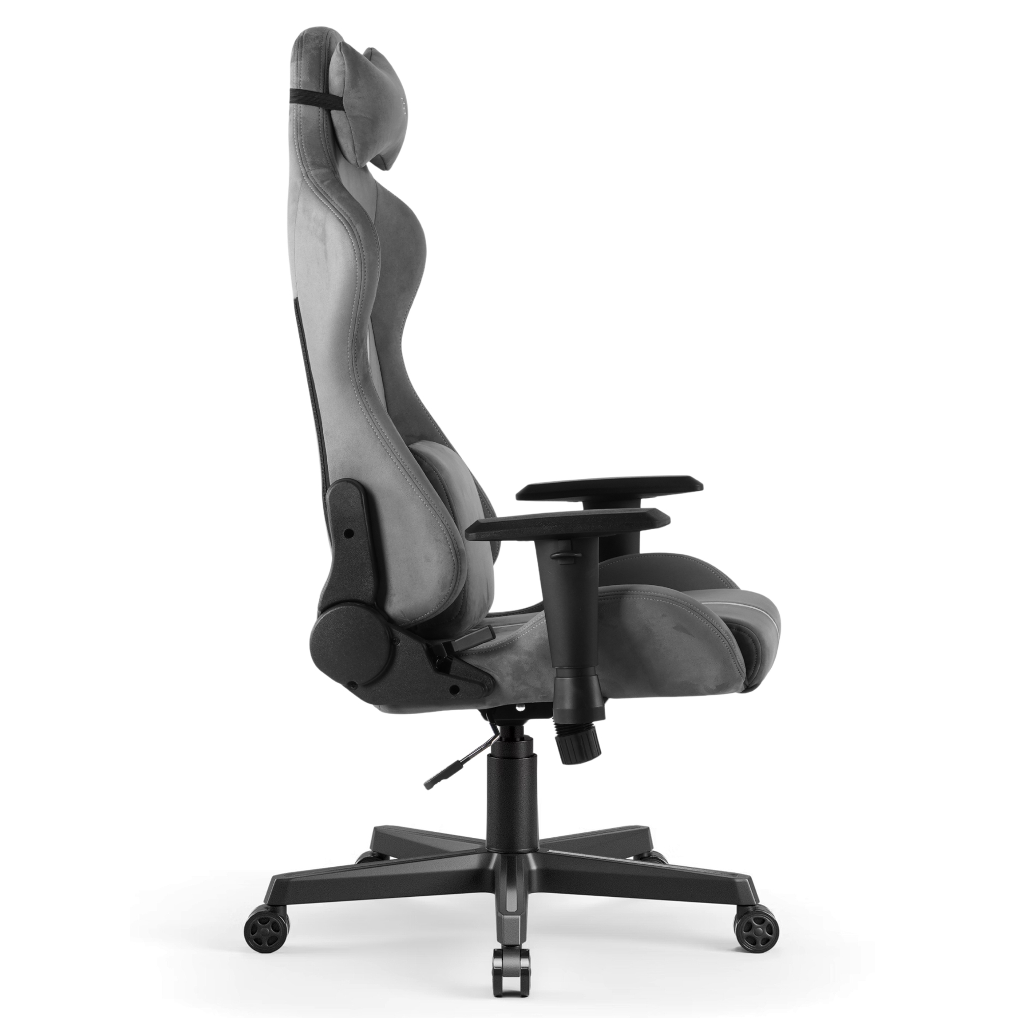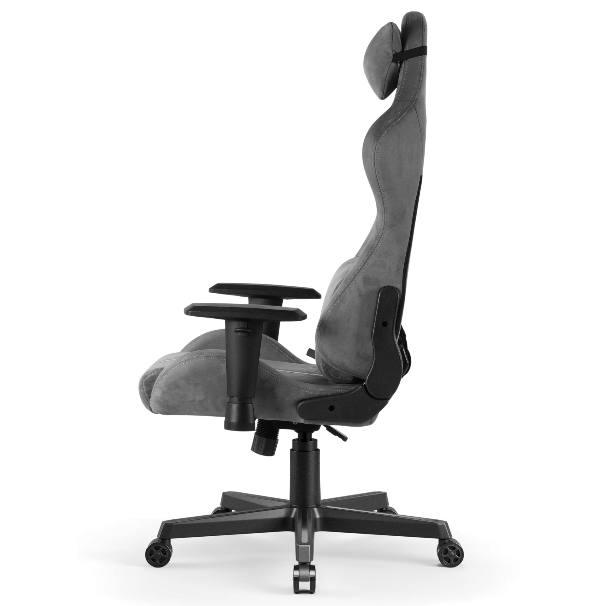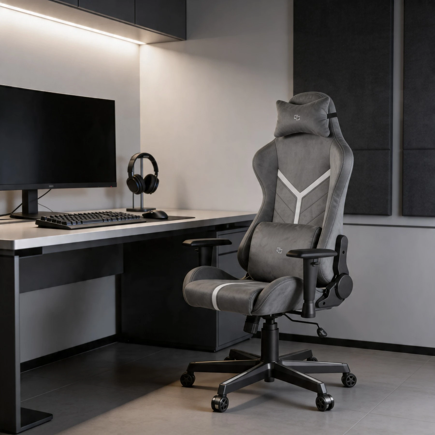 Wariant ciemnoszary G 525 to odpowiedź na zapotrzebowanie na fotele gamingowe, które nie dominują wizualnie w przestrzeni domowej. Neutralna kolorystyka alcantary pasuje do jasnych i ciemnych wnętrz, zachowując wszystkie parametry techniczne G 525: piankę tłoczoną na zimno, piankę HR i wzmocnioną metalową ramę.