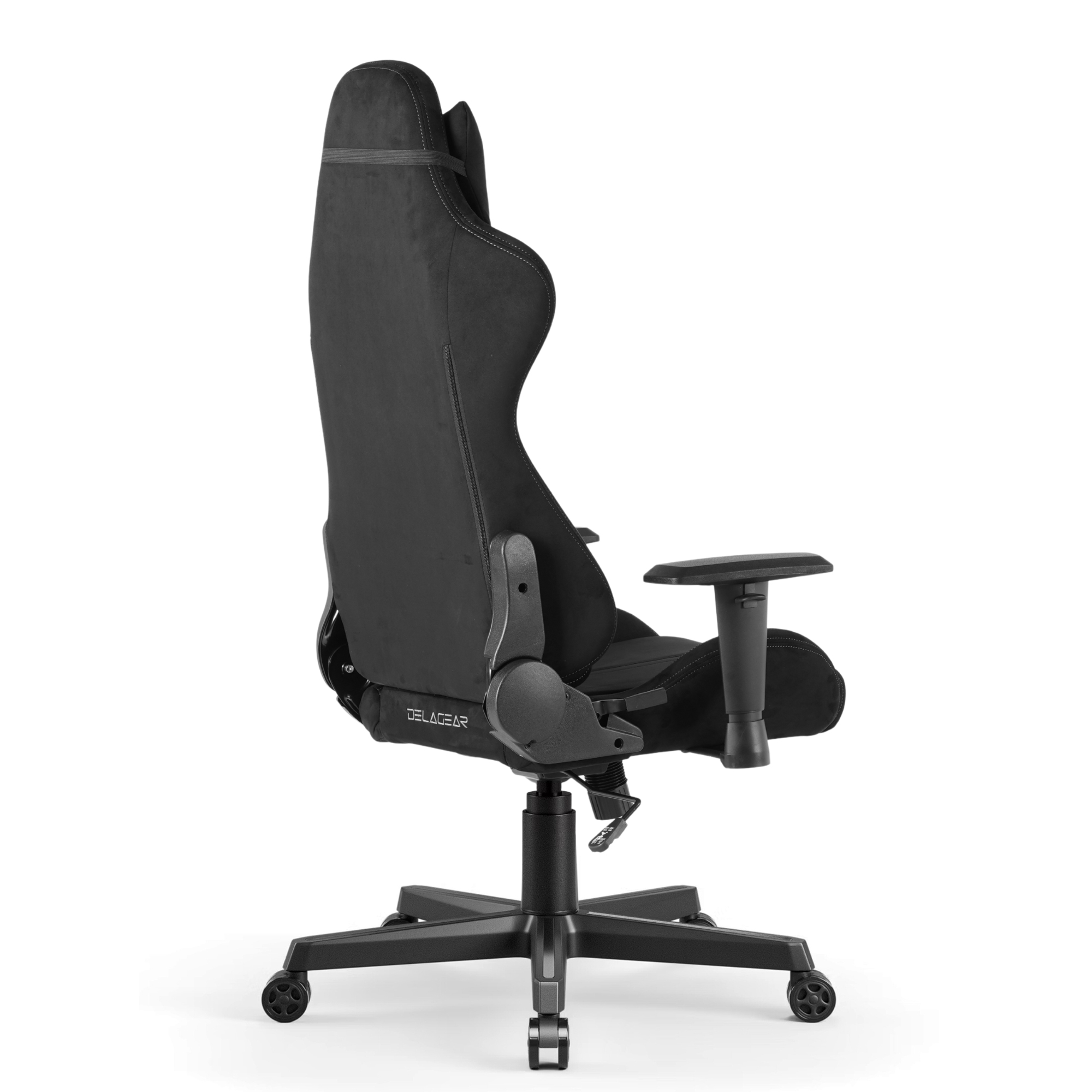 Fotel Gamingowy Delagear G 525 to ergonomiczny fotel gamingowy w rozmiarze L, pokryty obiciem z alcantary, z siłownikiem klasy 3, pianką HR w oparciu i mechanizmem BUTTERFLY z funkcją bujania - przeznaczony dla graczy i osób pracujących przy biurku o wzroście 150-180 cm.