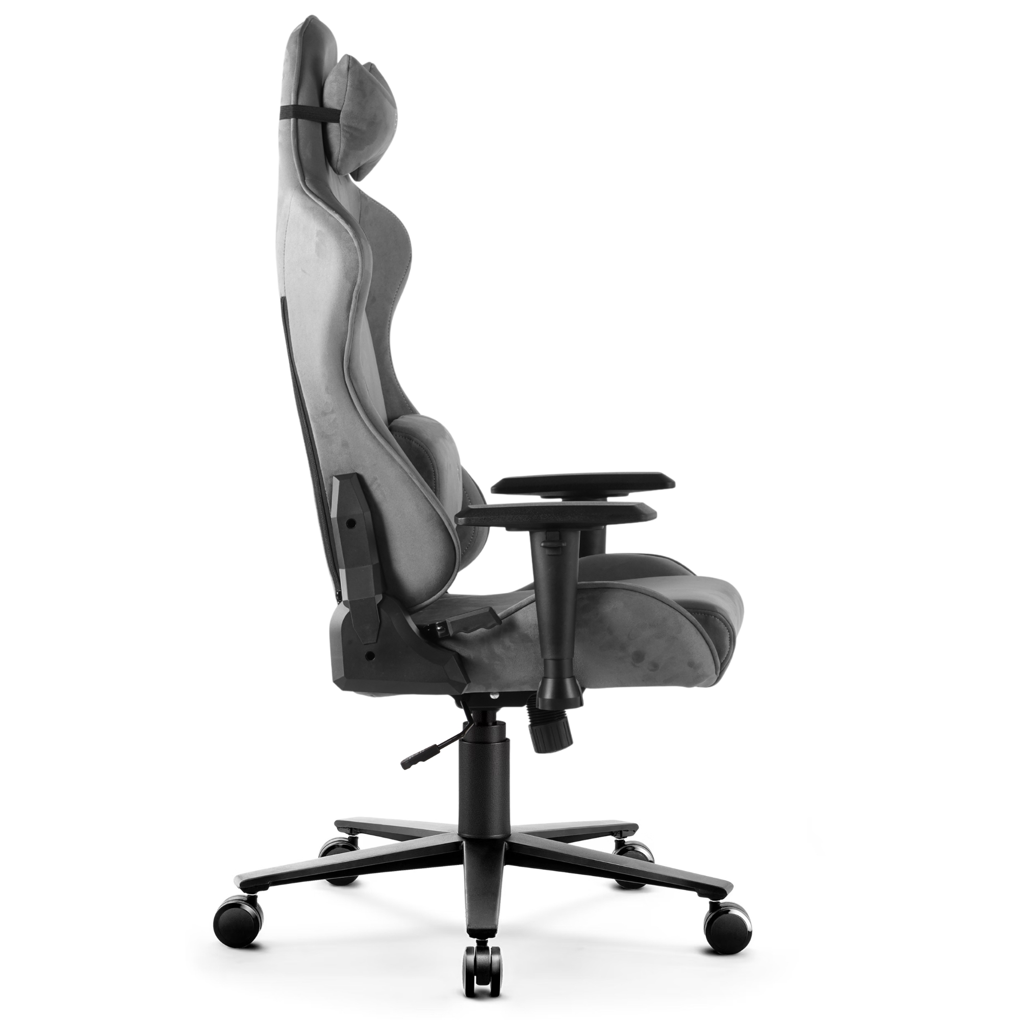 Ciemnoszary odcień alcantary neutralnie współgra z białymi, szarymi i czarnymi elementami wyposażenia, nie wymagając kolorystycznej harmonizacji z resztą pomieszczenia. Fotel gamingowy, który nie zdradza się ze swoim gamingowym przeznaczeniem – idealny, gdy zależy na elastyczności estetycznej.
